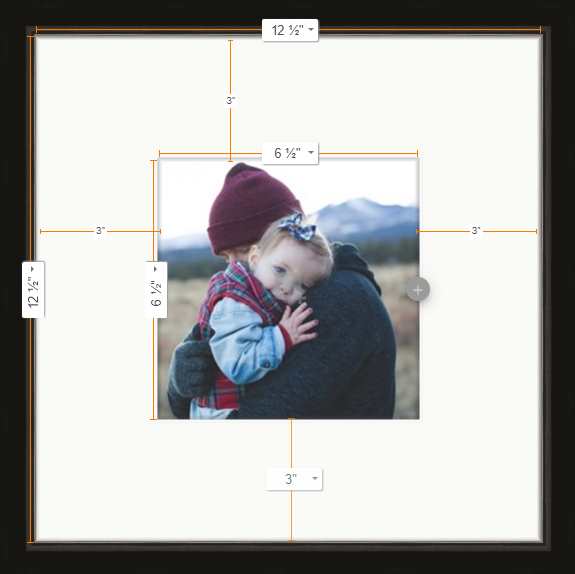 A a rule of thumb, 2-4 inches of picture matting around the art is suitable for most art work, the larger the art work, the larger the mat. Wide matting makes the art seem more important. 1 inch is almost never enough, even on household art, it looks somewhat cheap. If you are selling your art work with just the mat, do your best to fit the outer size of the mat to a standard picture frame size (ie. 8×10″, 11×14″, 16×20″, 18×24″ etc.) as it will make it much easier for your customers when they look for a frame to match the matboard. Review our guide on Measuring Matboards for more detail. Some art work looks great with extremely wide mats, for example the square mat below is a 12×12" with a 5×5" opening. The borders are 3.5″, almost the same as the photo itself but it has a great effect. The key is to really experiment to find what works best for your art.